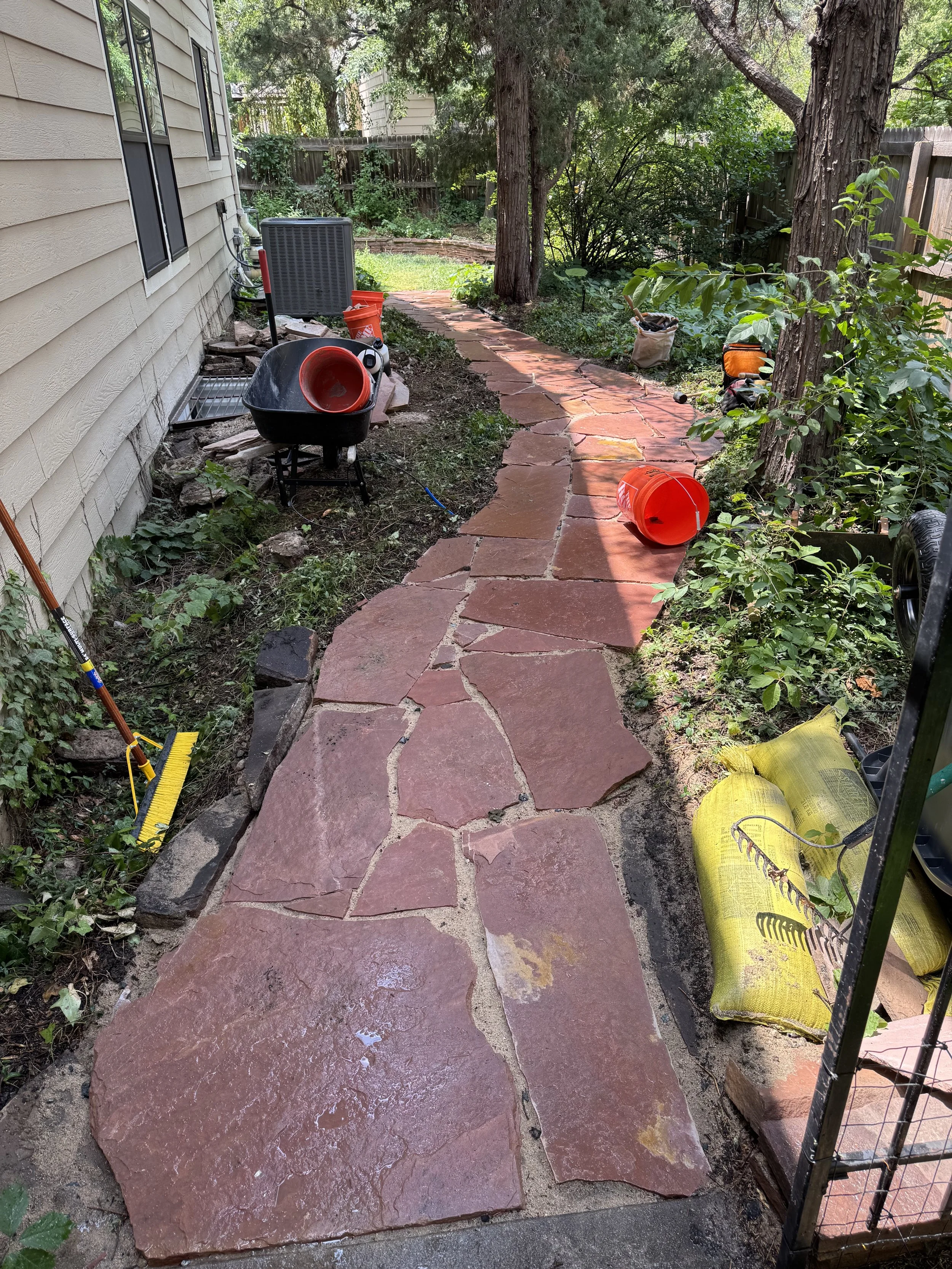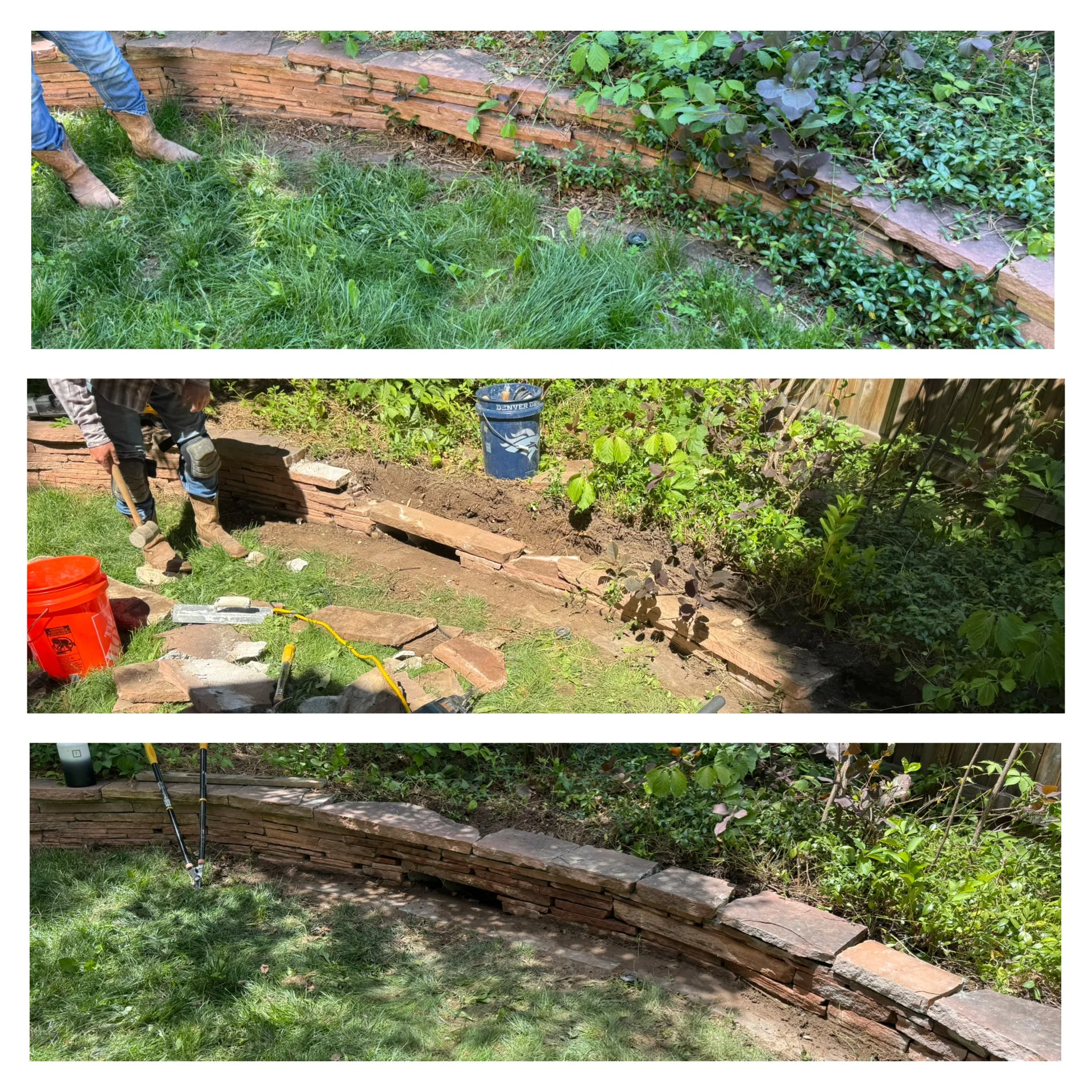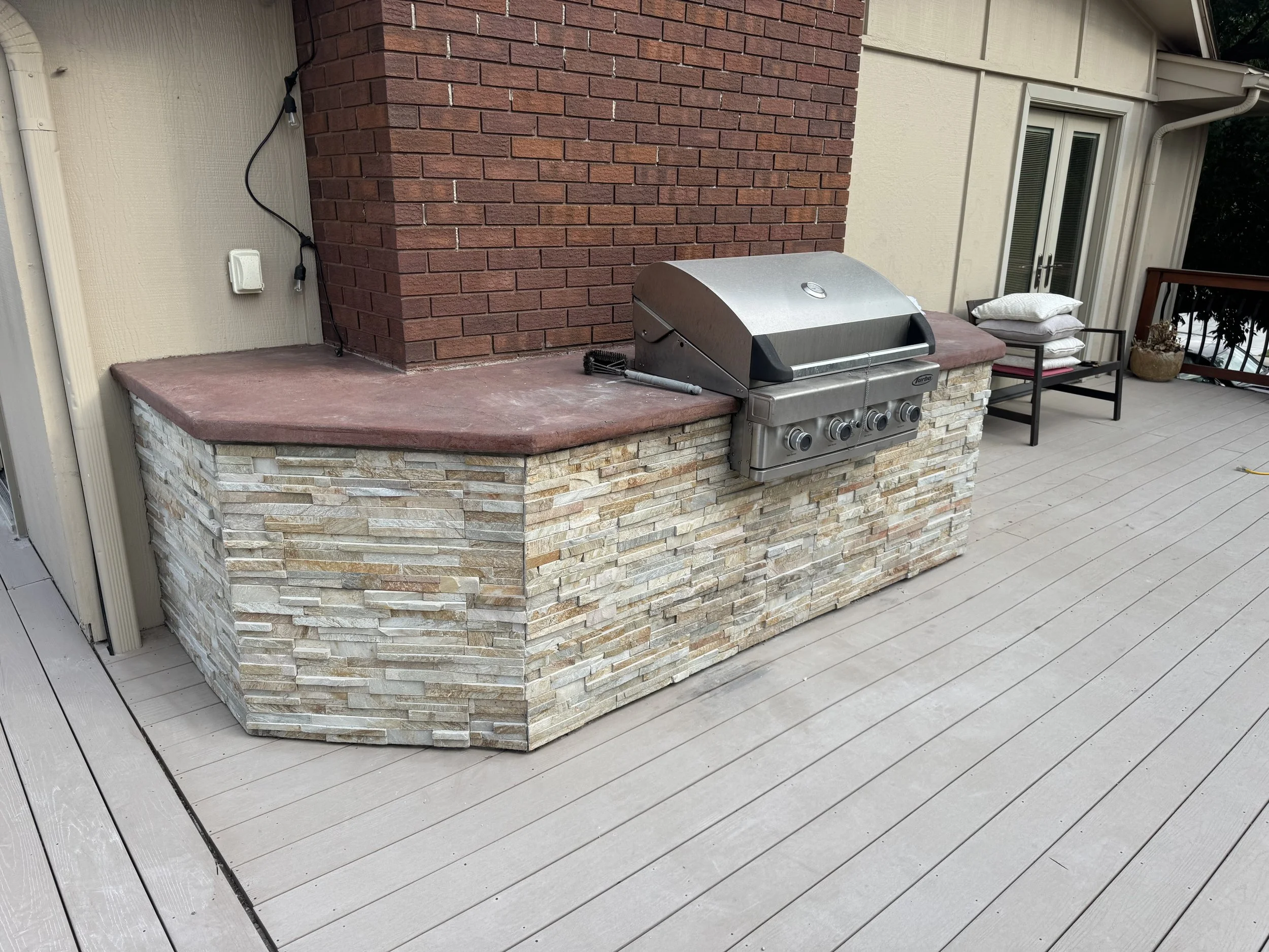 Stone veneer wrap for outdoor barbecue and concrete counter patch